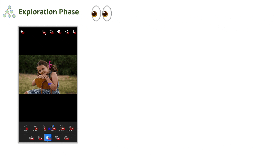 为了提高探索效率,如果当前 UI 页面似乎与应用的主要任务无关(如广告页面),代理将停止进一步探索并使用 Android 系统的返回功能返回到前一个 UI 页面。这种目标导向的探索方法,相比随机探索(如深度优先搜索和广度优先搜索),确保代理专注于对应用有效操作至关重要的元素。此外,代理还利用语言模型的现有关于用户界面的知识来提高探索效率,直到完成分配的任务。