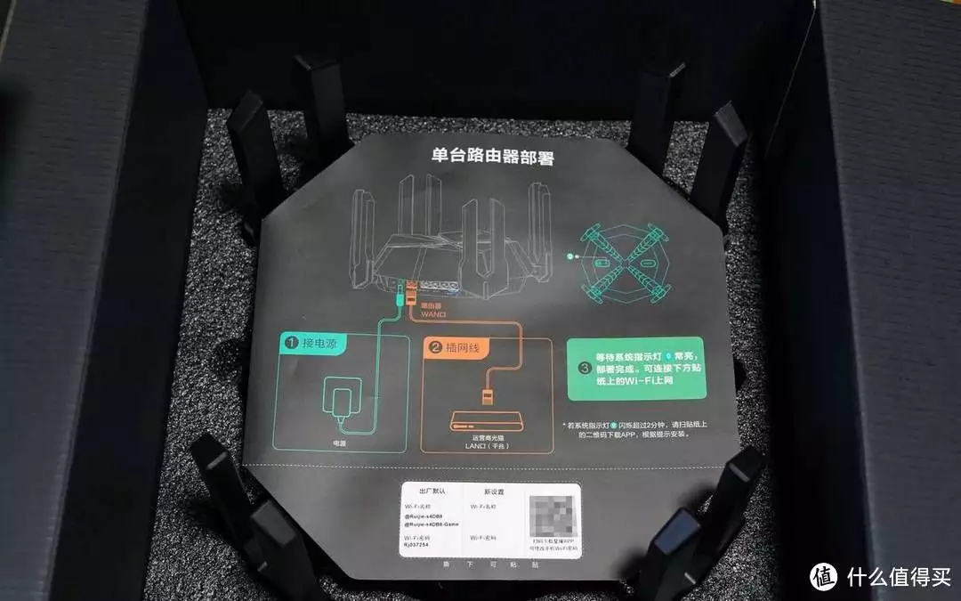 这个包装,村民还真不敢想象一个商用大厂能做出如此上潮流的东西,毕竟一般商用机都是牛皮纸,工包货;锐捷天蝎电竞路由器十分科幻呀,彩色天蝎动漫机甲,炫酷的Logo还挺会!又电竞,拿捏村民的口味,比同为商用大厂的H3C好不少。