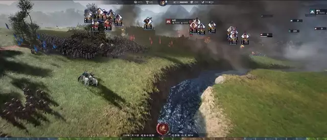 但同时,游戏又展示了回合制一般的结算形式,所以游戏也可能是基于《三国志》的基础战斗逻辑,但将战斗过程给具象化为类似《全面战争》那样的战场表现——也就是说玩家也许并不能实时操控部队中的某几个单位。
