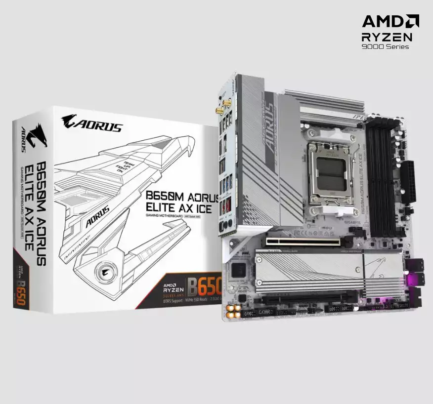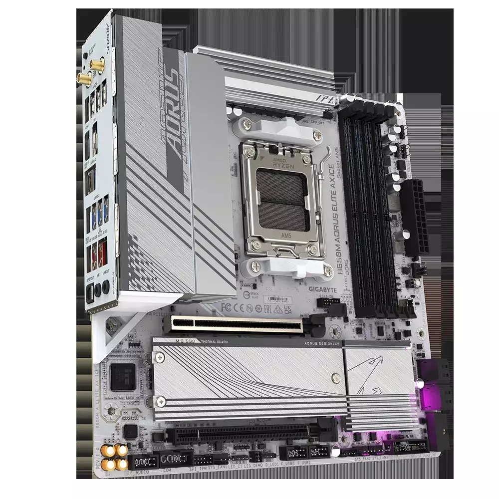 除了上面这些,技嘉还有其他颇具人气的主板产品也值得入手,比如这款 B650M AORUS ELITE AX ICE 冰雕,这款产品采用 12+2+2 相供电,高品质电感和电容用料,实心 8 Pin 针脚,6 层 2 盎司铜低损耗 PCB,全覆盖散热装甲。