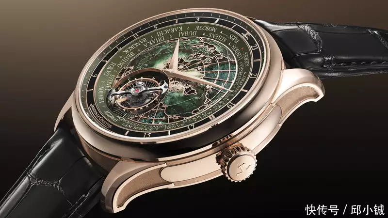 积家Master Grande Tradition Calibre 948超卓传统大师系列948型机芯腕表,首次将世界时复杂功能与飞行陀飞轮融为一体。积家专利的世界时陀飞轮每24小时在表盘上旋转一周,恰好为一个平均太阳日。与所有经典世界时显示一样,该腕表的绿色蛋白石环圈上也围绕着每个时区代表的城市名称。