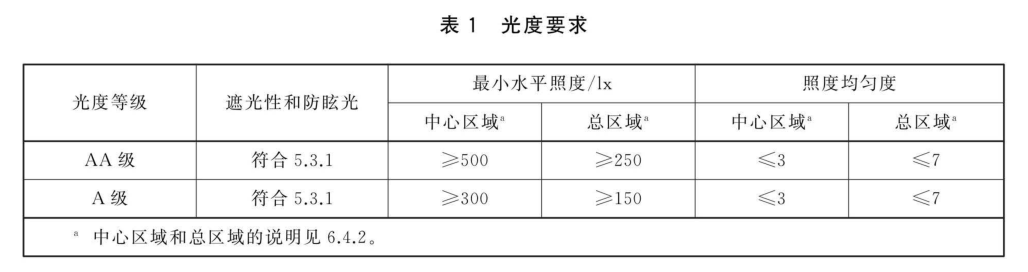 产品要符合AA级标准。具体要求是50cm*30cm的区域内,照度的最小值超过500lx,均匀度≤3;70cm*50cm的区域内,照度的最小值超过250lx,均匀度≤7。其中均匀度的数值越接近1越好。