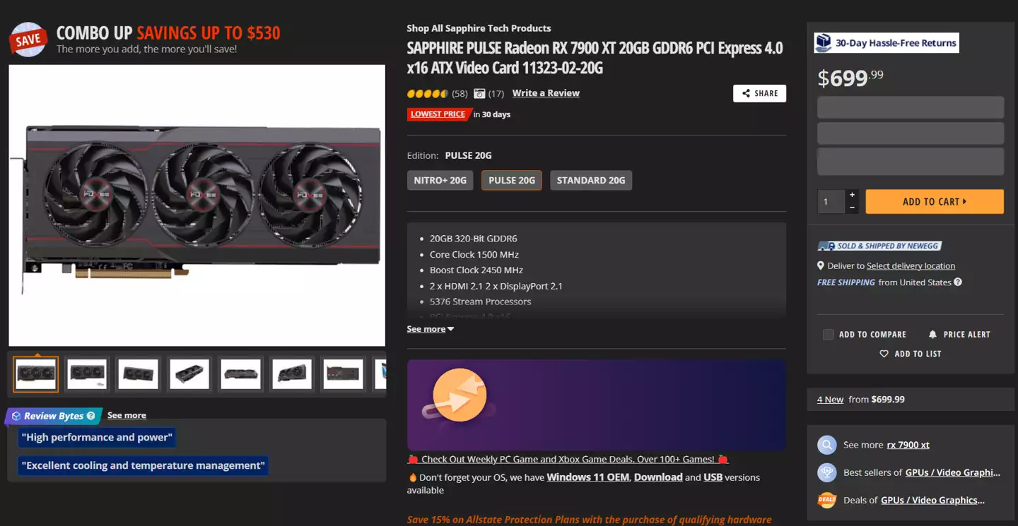 同时,这款显卡在海外也迎来了大幅降价,相比首发价 899 美元已经降至 699 美元(IT之家备注:当前约 5033 元人民币),包括新蛋、亚马逊、百思买都是这个价。