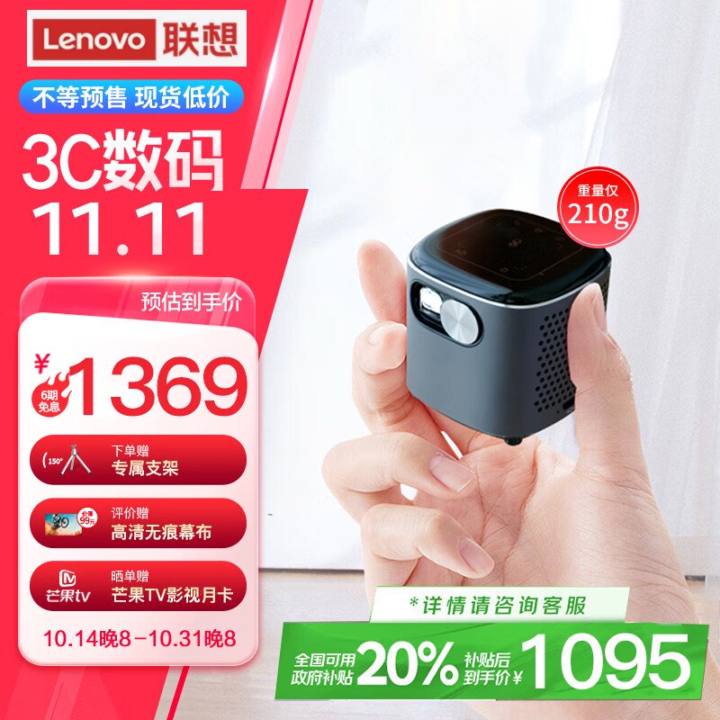 联想 T6S 便携智能投影仪京东自营日常售价 1369 元。