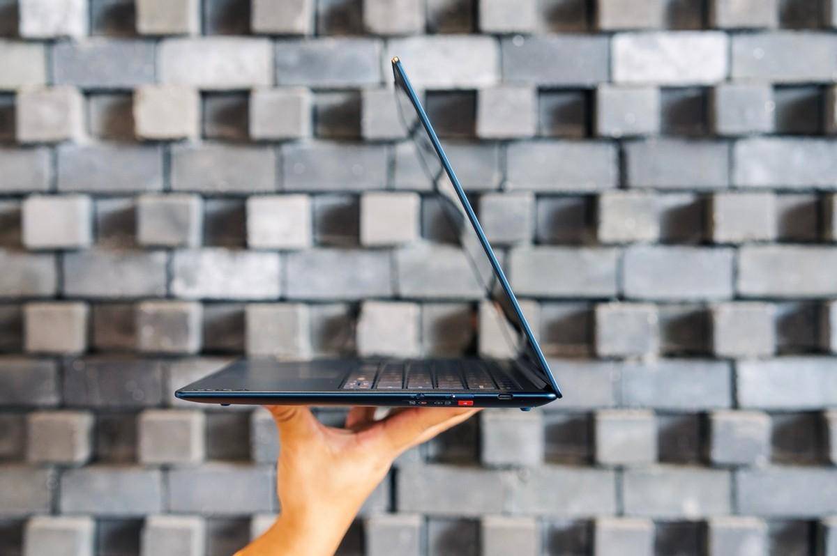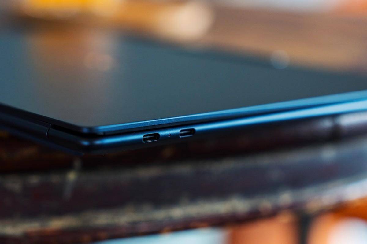 接口方面,为了极致轻薄,YOGA Air 14s提供了3个全40Gbps满血全功能的USB4接口,也都支持快速充电,右侧还添加了电源与摄像头物理开关。这么设计让机身看起来非常精炼,不过要满足拓展性用户可能要自备转接器或拓展坞了。