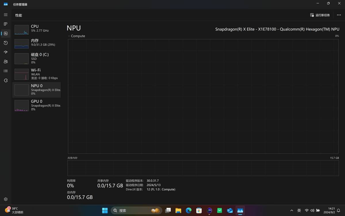 YOGA Air 14s在运行AI功能时是可以看到任务管理器中NPU的运行情况的,NPC不再是摆设。