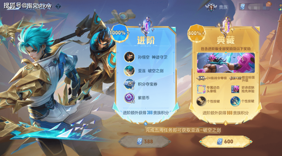 典藏战令额外赠送破空之剑和撼地雄心的个性按键,购买立即获得24级战令等级,可激活典藏战令专属的动态标签,以及30天亚连破空之剑的限免卡,提前体验。