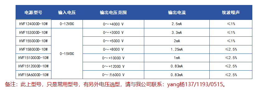 输出单电压: 100,200、300、400、500 、600、800、 1000、1500、2000、3000、4000、5000、6000、8000、10000、12000VDC;
