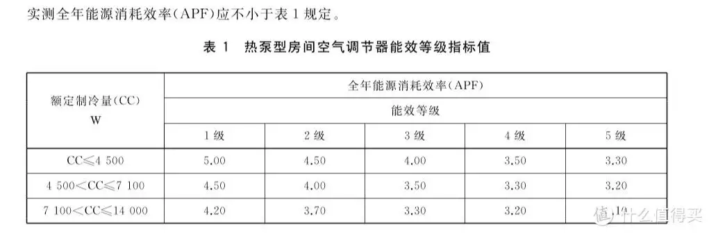 现在主流标注的是APF值,中文全称:全年能源消耗率。具体公式如下: