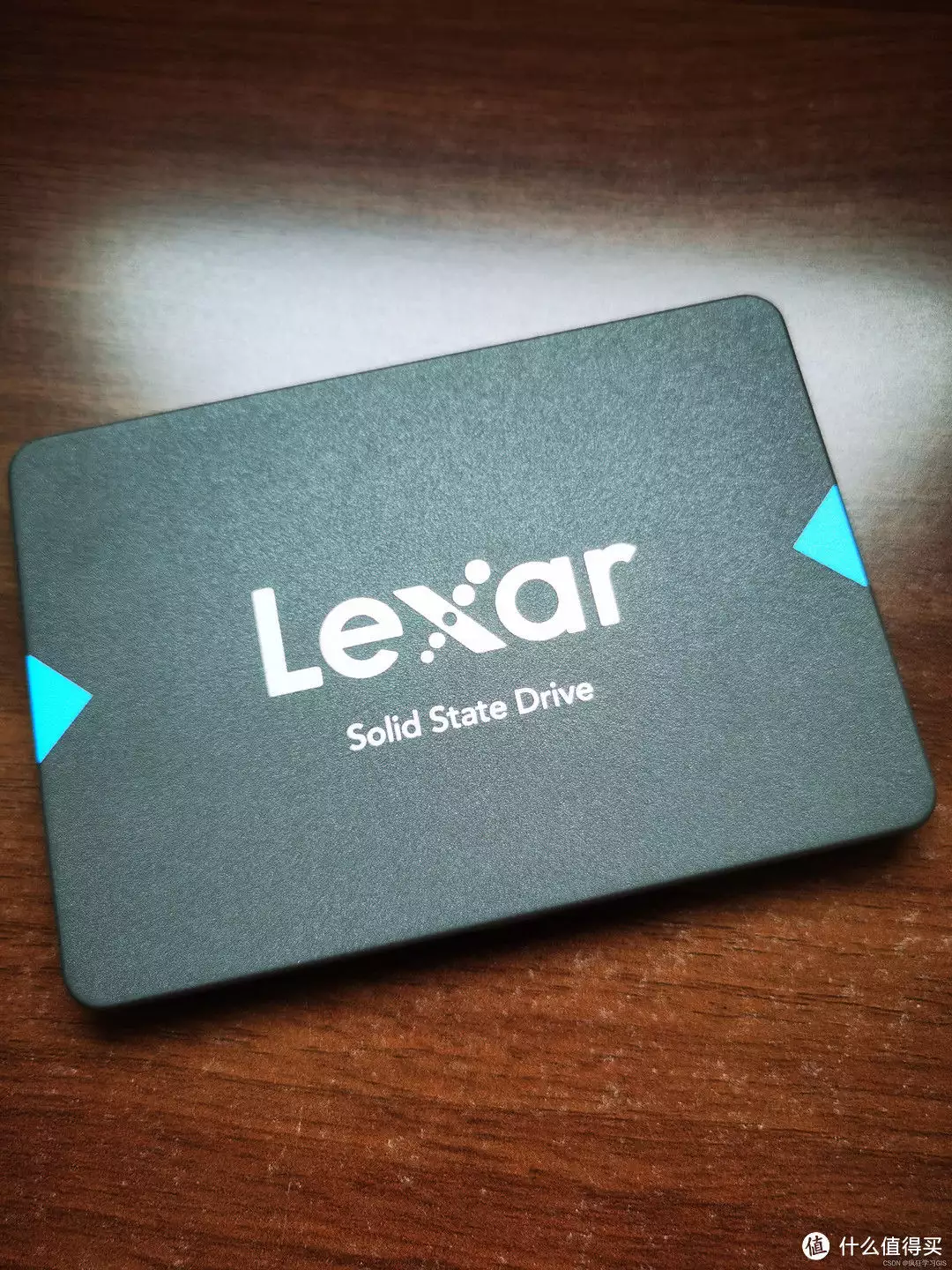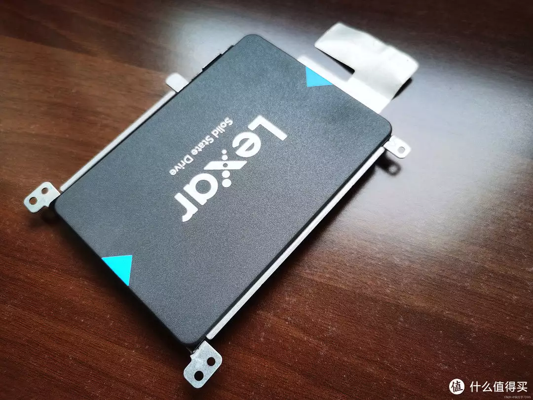 接下来,再将固态硬盘从硬盘支架中取下来,同样借助对应型号的螺丝刀即可。其中,取下的固态硬盘其中一面如下图所示。