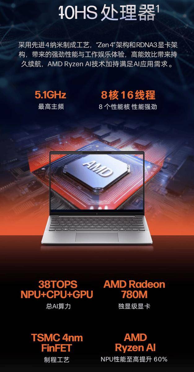 处理器:AMD锐龙7-8840HS RAM:32GB RAM 存储空间:1TB SSD 屏幕:13.3英寸2560x1600分辨率责任编辑: