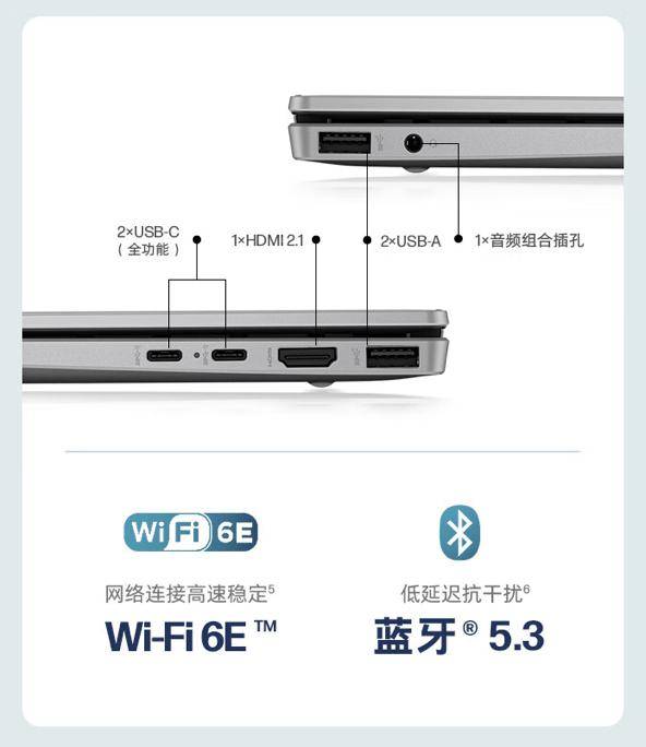 此外,该机支持Wi-Fi 6E、蓝牙5.3;机身左侧配备1个 USB-A接口、1个3.5mm;右侧配备2个“全功能”USB-C接口、1个 HDMI 2.1接口、1个 USB-A接口。