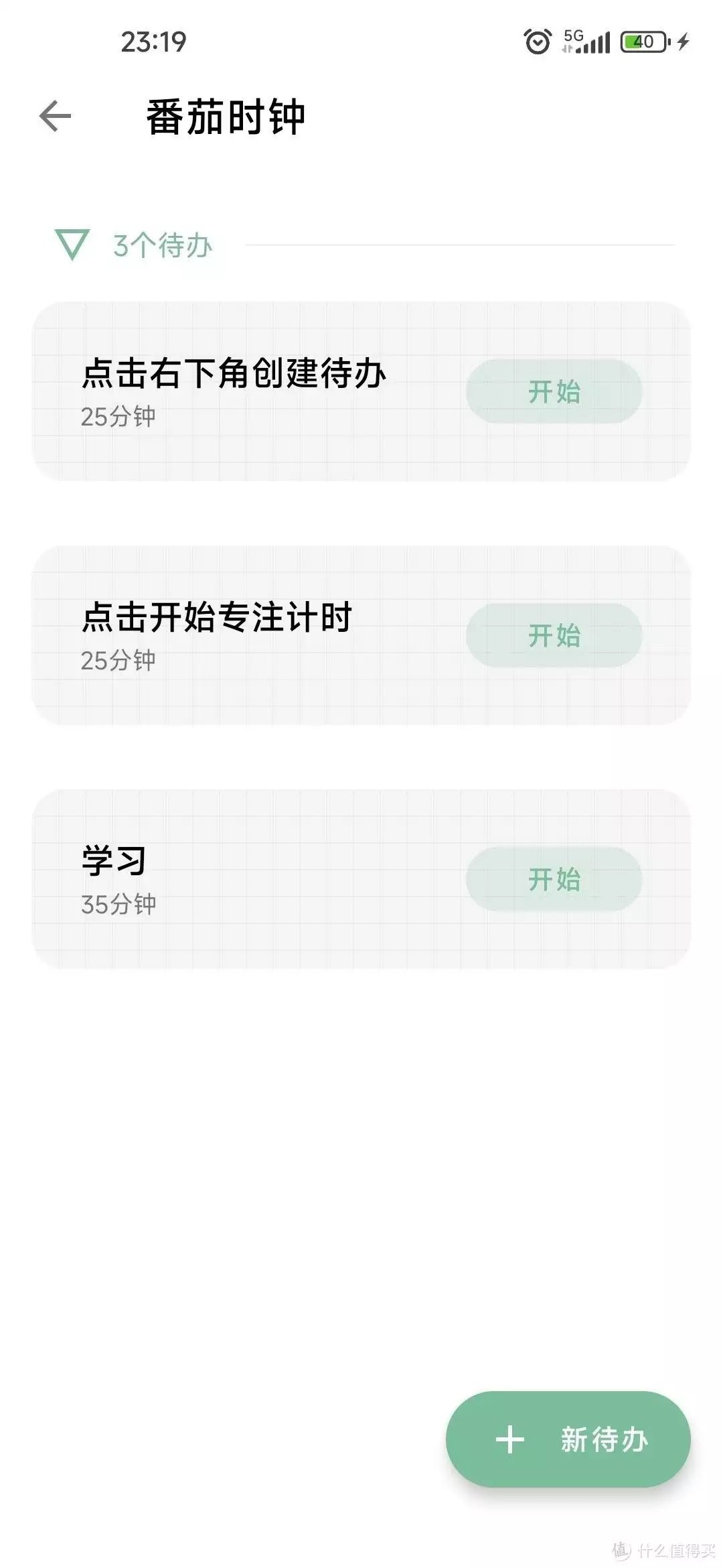 可以新加代办,设置具体时间,设置完就会显示在代办列表中,随后点击开始,就可以开始“愉快”地专注的进入“沉迷学习,无法自拔”的状态了。