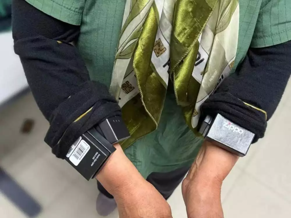 旅客后背腿臂绑藏17个ZIPPO打火机入境,被罗湖海关查获
