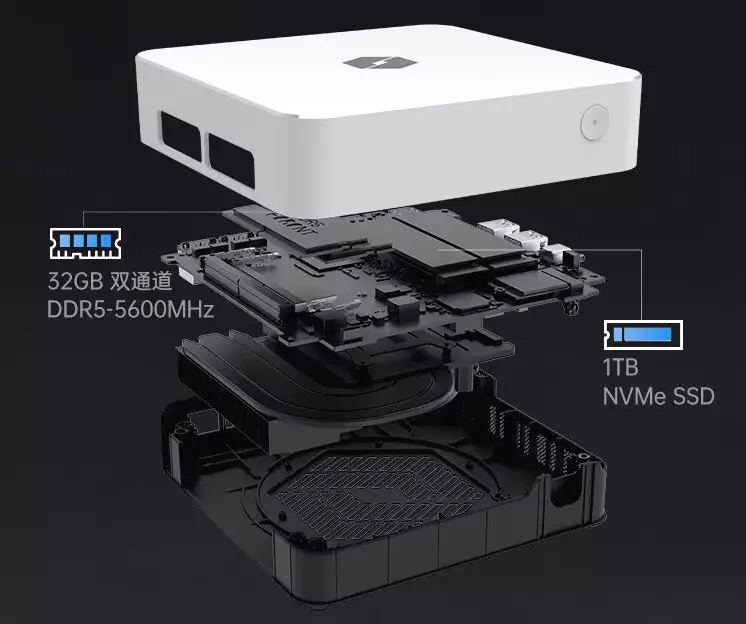 该机厚度 37.8mm,重量 0.75kg,采用边缘 CNC 钻切工艺和炫彩 LOGO;搭载锐龙 7 8845H 处理器,支持 65W 性能释放,配有 32GB DDR5 5600 内存 + 1TB 存储,预留了一条 PCIe 4.0 X 4 规格的空闲 M.2 接口。