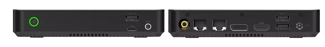 该迷你主机厚度同样为 28mm,配备双千兆网口、USB4 接口、3 个 USB 3.2 Type-A、1 个 HDMI 和 DisplayPort 接口。