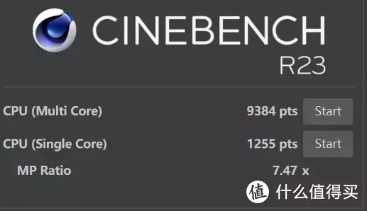 CINEBENCH R23,单核分数:1255,多核分数:9384