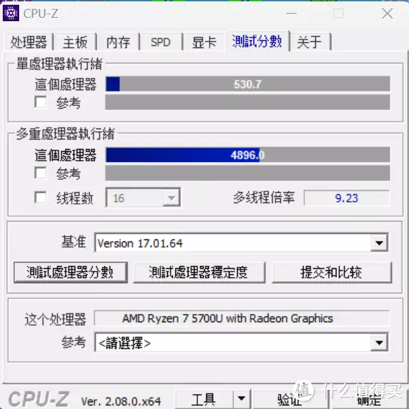 CPU-Z ,单核分数:530,多核分数:4896