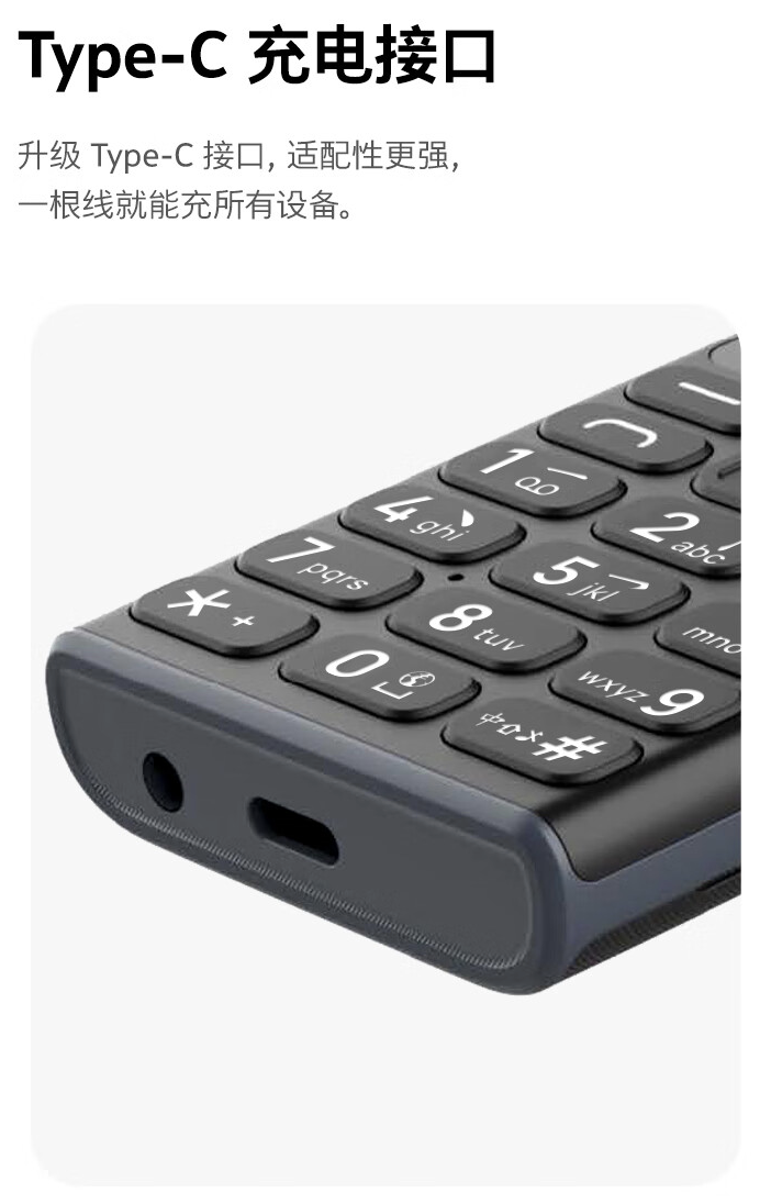 该功能机九宫格键盘处取消了诺基亚 Pure 字体,背部无摄像头,不过配备了 LED 手电筒和 USB-C 接口(IT之家注:充电功率 2.75W),同时支持蓝牙 5.0 技术。