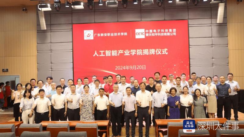 论坛结束后还举行了广东新安职业技术学院-中国电科普天和平人工智能产业学院揭牌仪式。广东新安职业技术学院与中国电子科技集团旗下的普天和平科技有限公司联手,共同创立了“人工智能产业学院”,标志着双方在深化产教融合、培养高素质AI人才方面迈出了坚实的一步。