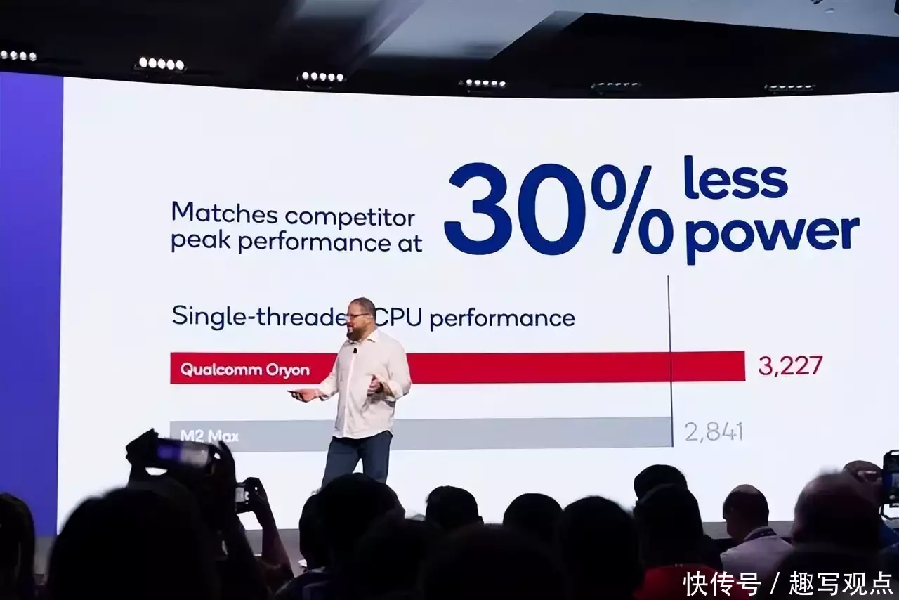 不过随着2021年高通收购了芯片设计公司Nuvia,高通的设计能力得到提升,在2023年10月的8 Gen3发布会上,骁龙 X Elite就使用了Nuvia设计的Oryon,其性能对比苹果 M2的多线程性能高出了50%,是英特尔i7-1355U和i7-1360P的两倍。而峰值性能功耗还比 M2 Max少30%,比i9-13980HX少70%。性能提升,功耗下降,大有拳打苹果,脚踢Intel的味道。而8 Gen4使用的Phoenix大概率和Oryon同架构,只是根据平台做出了一定的调整,其性能同样可期。