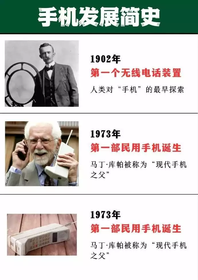 1902年,人类第一个无线电话装备诞生;1973年,人类第一部民用手机诞生。