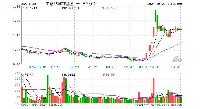 10月28日,截止午间收盘,中证A50ETF基金(561230)跌0.61%,报1.137元,成交额5720.45万元。中证A50ETF基金(561230)重仓股方面,贵州茅台截止午盘跌0.26%,宁德时代跌1.12%,中国平安跌0.68%,招商银行跌1.89%,美的集团跌1.18%,长江电力跌1.05%,紫金矿业跌0.70%,比亚迪跌1.36%,中信证券跌0.25%,恒瑞医药涨1.67%。